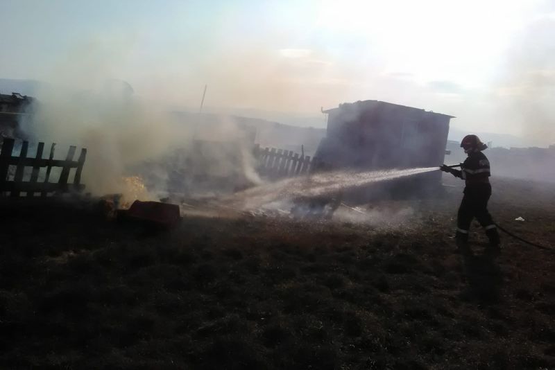VIDEO | Adăpostul unui cioban situat pe câmp a luat foc