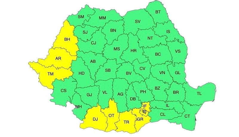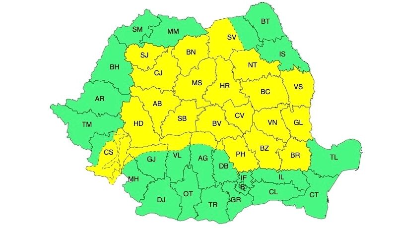 ANM: ATENȚIONĂRI COD GALBEN DE INSTABILITATE TERMICĂ ACCENTUATĂ