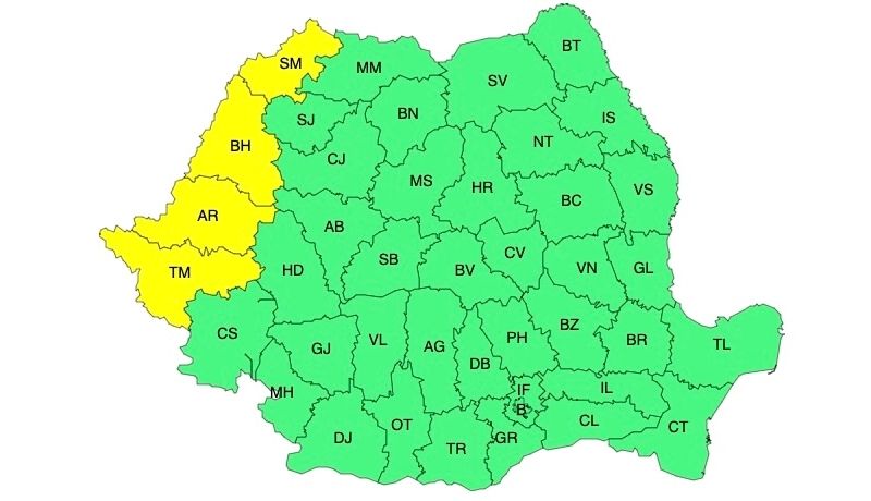 Valul de căldură va persista în nordul Banatului și în Crișana, unde local va fi caniculă, iar disconfortul termic ridicat. Indicele temperatură-umezeală (ITU) va atinge pragul critic de 80 de unități. Temperaturile maxime vor fi în general de 34...35 de grade.