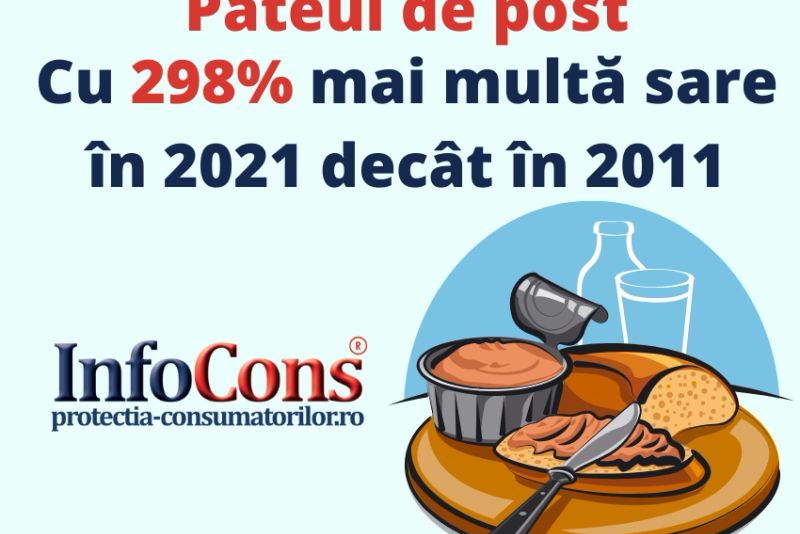 În plină perioadă de post, premergătoare perioadei Crăciunului, Asociația Națională de Protecția Consumatorilor trage un semnal de alarmă în privința cantității uriașe de sare existente în pateurile vegetale. Astfel, potrivit unui studiu comparativ cu privire la evoluția produselor tip pate vegetal/pastă vegetală, realizat de InfoCons în perioada 2011, 2015, 2016, 2018 și 2021, s-a constat cu 298% mai multă sare față de acum 10 ani.