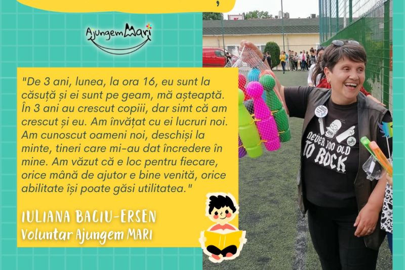 Iuliana Baciu-Ersen, din Râmnicu Sărat, Buzău, este cadru militar în rezervă. Are 57 de ani, iar de trei ani este voluntar în programul Ajungem MARI. A povestit cum a devenit voluntară și cum a schimbat-o pe ea această experiență.