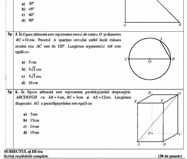 La subiecul I au fost 6 subpuncte, fiind itemi obiectivi – tip grilă, fiecare punctat cu 5 puncte. La fel, subiectul al II-lea are 6 subpuncte, tot grilă și notate tot cu câte 5 puncte fiecare. la subiecul al III-lea problemele nu mai sunt cu răspunsuri de tip grilă.