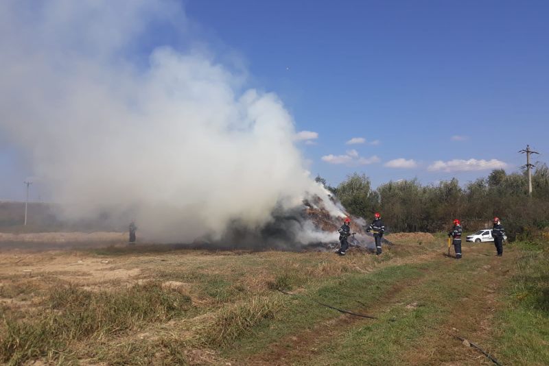 VIDEO. Incendiu la 60 de baloți de paie, în Avrig