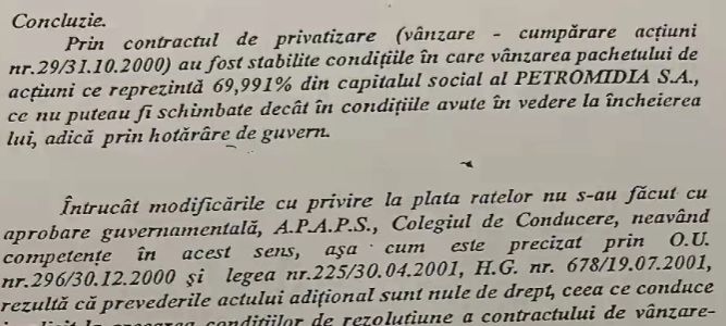 Un act aditional prin care se modifica atat cuantumul sumelor cat si plata tranșelor. La incheierea actulu iaditional APAPS. Prin contractul de privatizare - 69% Petromidia”, a afirmat A. Alexandrescu.