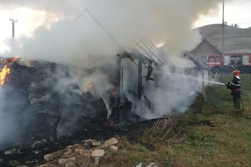 UPDATE | O șură plină cu fân a luat foc la Buzd