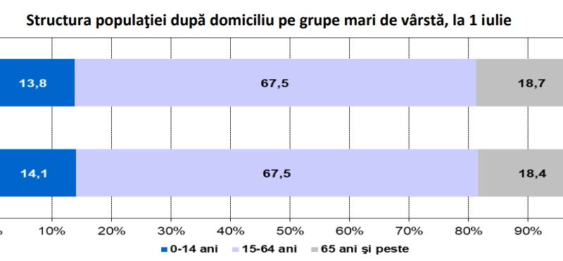 Datele statistice demografice conturează un fenomen din ce în ce mai îngrijorător: populația României scade numeric și îmbătrânește într-un ritm tot mai accentuat. În ultimul an, populația României după domiciliu a scăzut cu 0,5% față de aceeași perioadă a anului precedent.