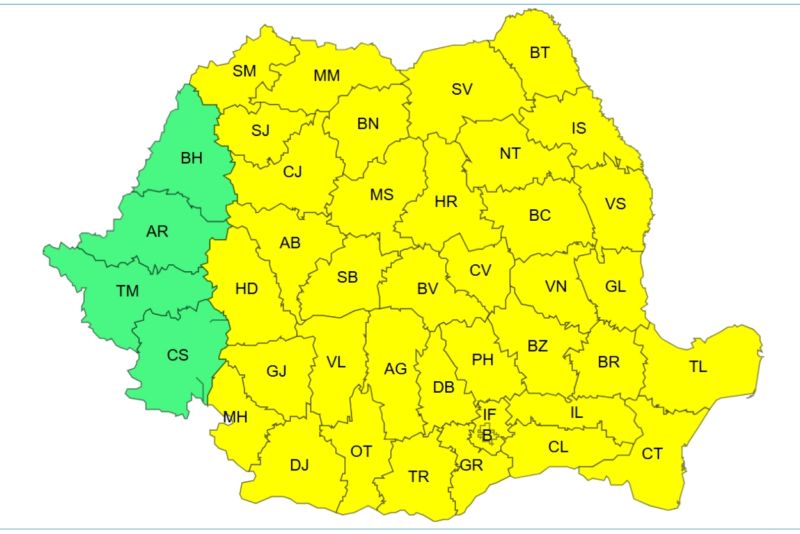 Potrivit lor, de sâmbătă seară, de la ora 20.00, până duminică la ora 10.00, va fi în vigoare o atenţionare meteorologică Cod galben. În Moldova, Dobrogea, Muntenia, Oltenia, Transilvania, Maramureş şi în nordul Crişanei vremea va fi geroasă. Temperaturile minime se vor situa în general între -20 şi -10 grade.