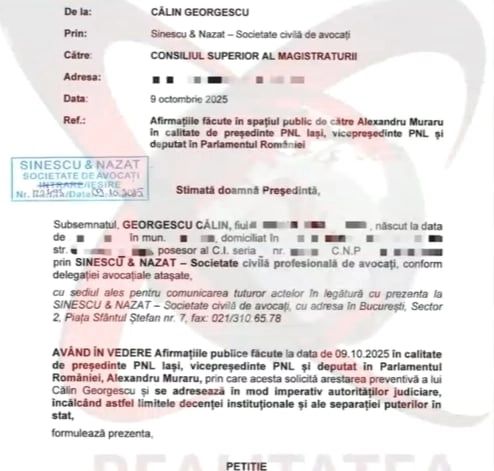 ULTIMA ORĂ: CĂLIN GEORGESCU A DEPUS PETIȚII LA CSM ÎMPOTRIVA LUI NICUȘOR DAN ȘI A LUI ALEXANDRU MURARU. ACUZAȚII GRAVE DE INGERINȚE ÎN JUSTIȚIE - DOCUMENTE