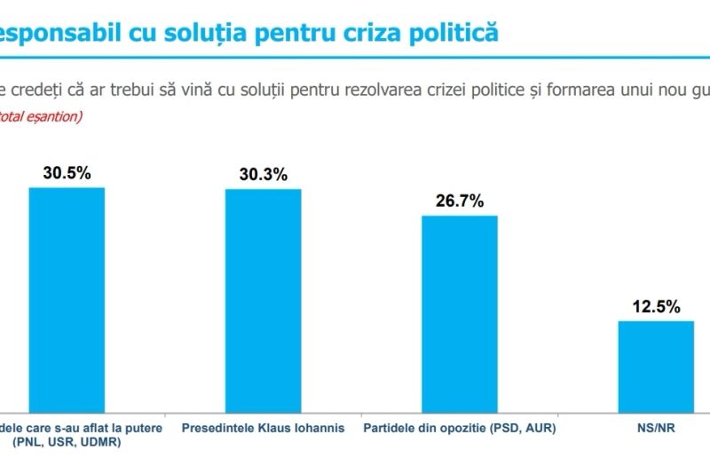 De la președintele care a câștigat alegerile din 2019 cu un scor zdrobitor, de 67%, Klaus Iohannis a ajuns să fie considerat vinovat de actuala criză politică. 26% dintre românii care au răspuns sondajului spun că Iohannis este principalul vinovat pentru criza în urma căreia a fost demis Guvernul Cîțu. Președintele este urmat de USR, cu 20 de procente și PNL - 16 procente.